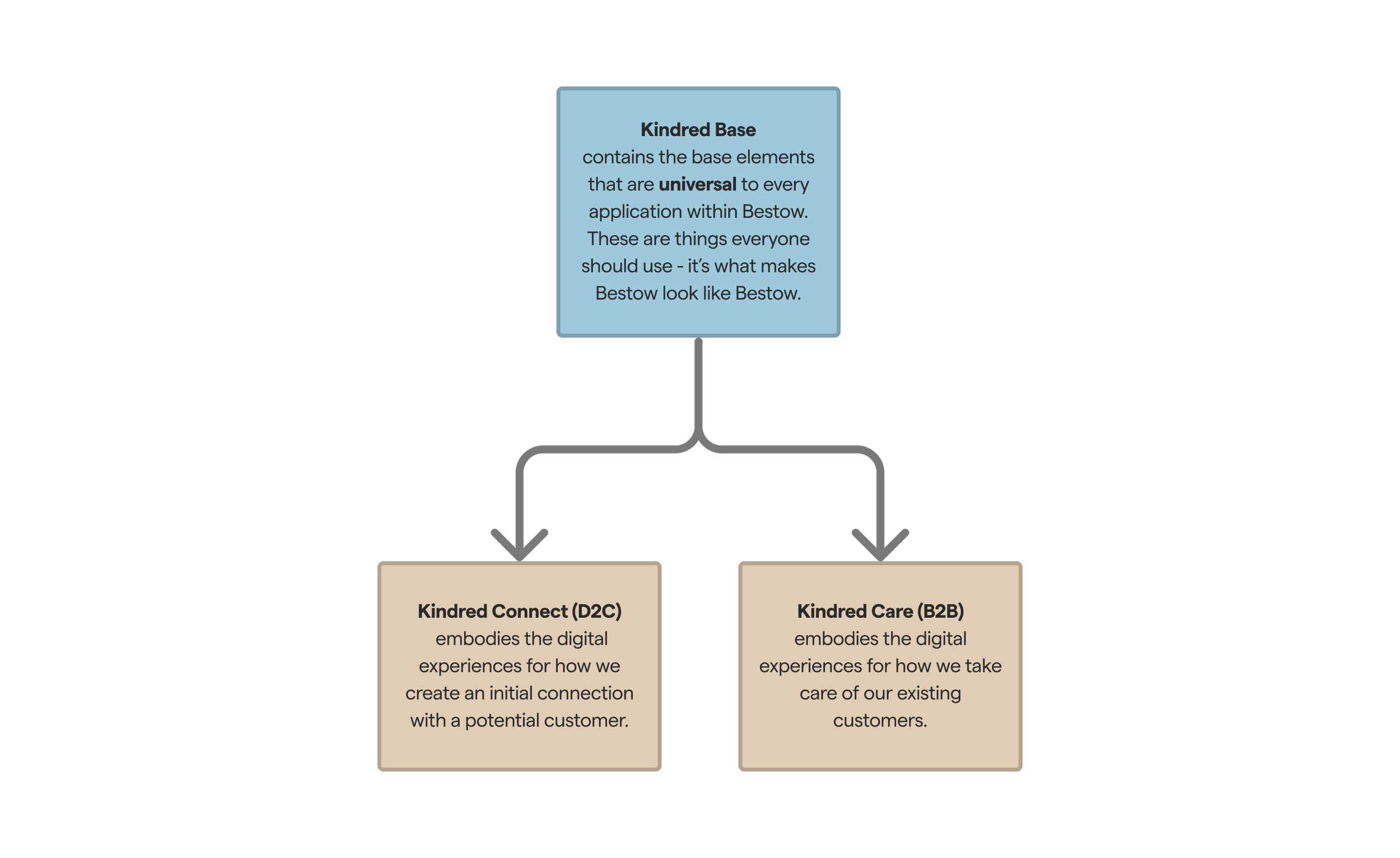 Kindred Base contained the foundational elements that are universal to every product at Bestow. These are things everyone should use - it’s what makes Bestow look like Bestow. Using Kindred Base is the minimum bar for every Bestow product.